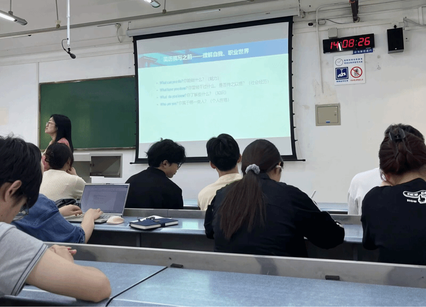 讲座伊始,赵轶群老师结合当前就业形势强调了简历在求职过程中的重要性,敦促同学们认真对待、高度重视简历的制作与撰写。紧接着赵轶群老师对简历的结构与各个部分进行了细致分析,包括但不限于个人信息的准确填写、个人技能能力和实习经历的精准展示,还带领同学们从多角度多维度看待简历、认识简历。