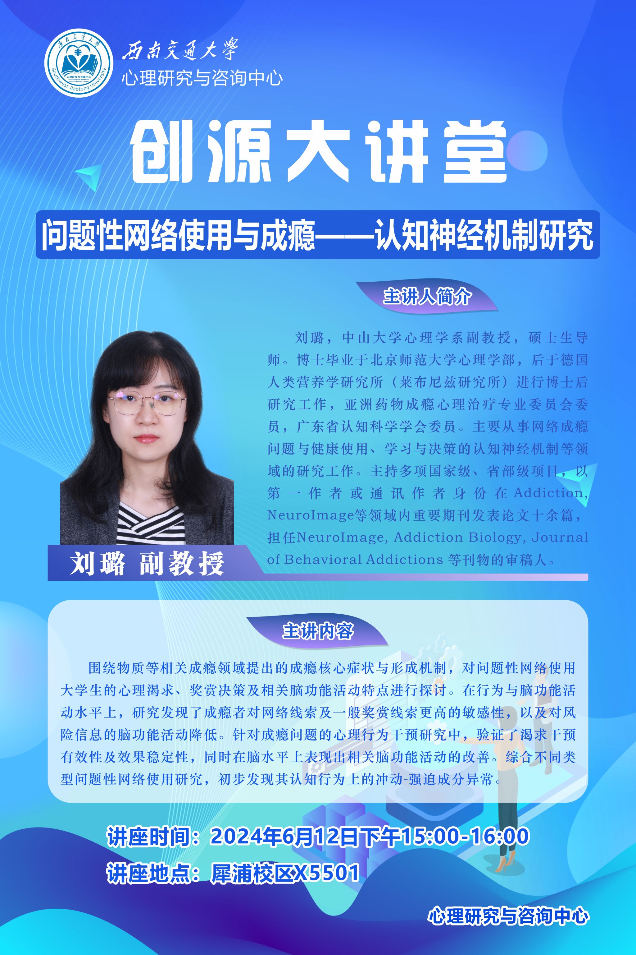 【创源大讲堂】问题性网络使用与成瘾--认知神经机制研究