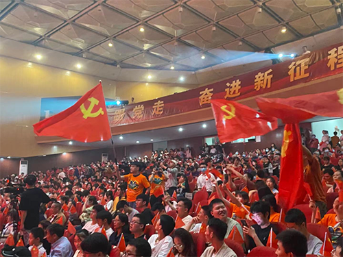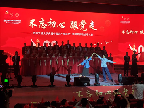 师生齐声唱响红歌,向观众展现了精彩亮眼的表演。
