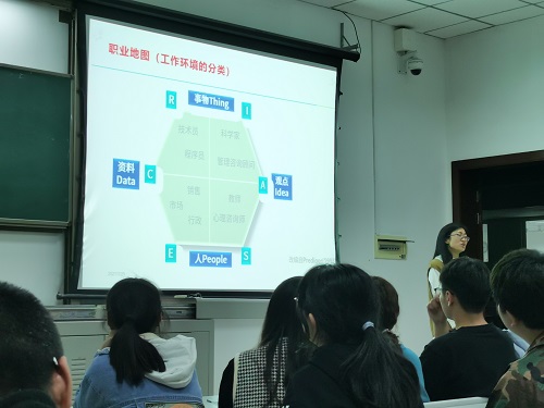 在活动最后,赵轶群老师总结了6个岛屿所对应的6种人格类型及相应的职业特点:R型代表实用型人格、I型代表研究型人格、A型代表艺术型人格、S代表社会型人格、E型代表企业型人格、C型代表事务型人格,并阐述了兴趣与职业的适配性问题,让学生们对自己的兴趣和人格类型有了更加清晰的理解,同时对职业(或专业)选择有了更明确的想法。