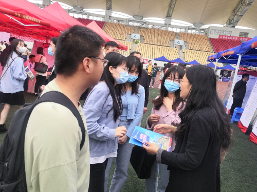 2021年4月24日,瓜子影视 2021届毕业生暨2022届实习生春季双选会于犀浦校区北区体育场举行。瓜子影视 直属党支部书记刘咏梅、以及辅导员陈瑶、梁坡深入双选会现场了解用人单位情况,并指导学生就业工作。