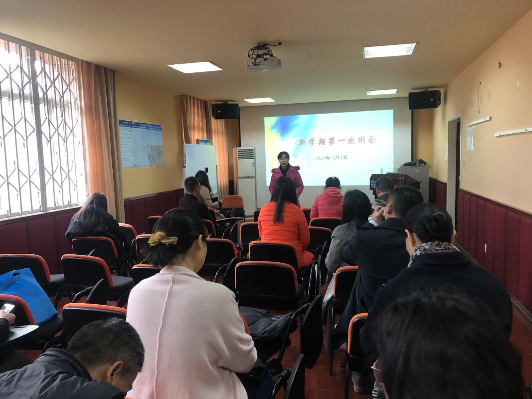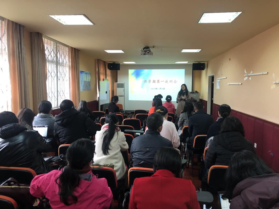 2021年春季学期第一次全体教职工大会在犀浦校区X5322召开,全体教职工参会。会议由刘咏梅书记主持。