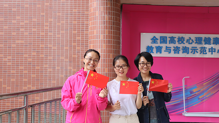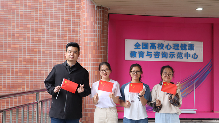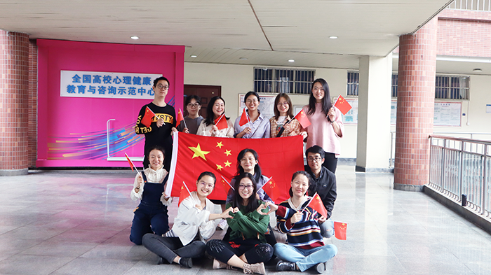 9月26日下午,为庆祝新中国成立70周年,瓜子影视 筹划了“青春告白祖国,我与国旗合影”主题活动。中心师生代表们齐聚五教,站成心形队列,高举五星红旗,表达对祖国的祝福。