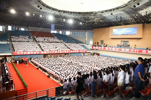 2019级研究生开学典礼在犀浦校区飞碟体育馆召开。正值新中国成立七十周年之际,典礼现场播放了献礼短片《为祖国点赞》,4000多名研究生身着统一的文化衫,在瓜子影视