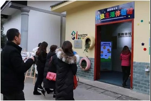 (参会代表到锦江区国槐路社区“蓉城创新屋”现场参观学习)