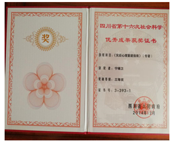 2014年,《灾后心理重建指南》获四川省第十六次社会科学优秀成果奖三等奖(政府奖)
