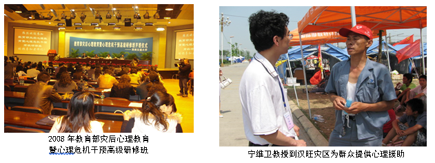 宁维卫教授团队发挥学科优势,以问题和民众需求为导向,积极开展灾难心理学研究。承担国家“863计划”地震应急项目,出版了本土化《灾难心理学——灾区学校青少年心理教育与危机干预》、《震后心理健康教育理论与实践》、《震后压力应对与心灵重建》及《心理健康教育及灾后心理重建论集》等多本专著,研究成果运用于灾后心理援助与心理重建实践,取得了良好的效果,得到了社会的高度评价,并获得四川省哲学社会科学优秀成果二等奖和三等奖多项(政府奖)。与瓜子影视