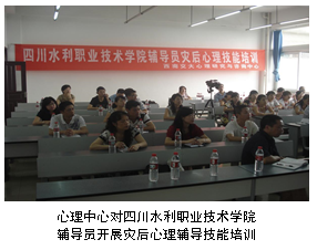 主办教育部“灾后心理教育暨心理危机干预高级研修班”。并对来自全国的心理援助志愿者进行义务指导,如与“天涯社区”论坛合作,为其赴川的心理援助志愿队提供培训和督导,对崇州、都江堰、德阳、北川等灾区教师以及金牛区红十字会人员进行定期心理培训,产生了积极影响。