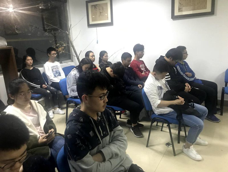 在做了简单的自我介绍之后,赵轶群老师便引导同学们开始了10分钟的冥想放松训练,大家在轻缓柔和的音乐声中缓缓地平静下来,跟随音频中的指导语将注意集中到自己的呼吸和身体上,进行了一次全身心的放松之旅。