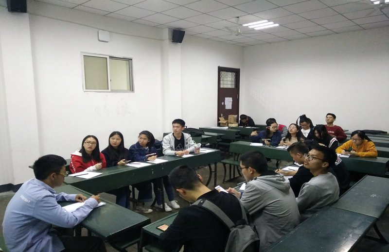 活动一开始,主持人用简练的语言介绍了活动的流程并把时间交给了考官,接着考官安排同学们做一个自我介绍并对大家进行了简单的考核。之后活动进入正题,考官抛出考题后就把时间留给了同学们进行自由讨论并发言。