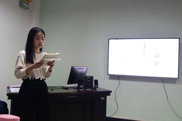 七点整,活动正式开始。随着主持人的介绍,八位参与分享诵读的同学将一本本经典著作娓娓道来。