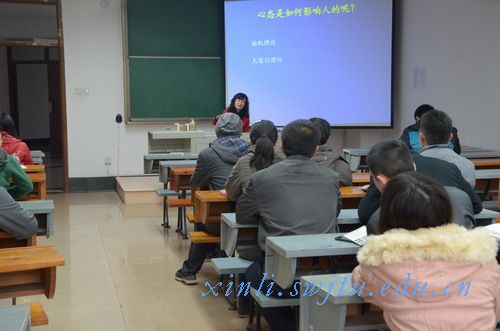 接着陈教授便问了大家文章开头的问题——人来到这个世界上是为了什么?有的同学说是创造价值,也有同学认为是实现自我价值,然而大多数同学都是沉默。“创造什么价值?自我价值是什么?”陈教授进一步提出问题,这次大家都沉默了。“人生快乐,幸福美满是人生的终极目标,我们都是在通往终极目标的过程上。”陈教授如是说。只有积极的心态才能达到自身心态和谐,进而才能达成人与人的和谐,最终才能缔造社会的和谐。而在通往终点的这个过程中,我们常常陷入负面情绪之中,于是,讲座最后陈教授就如何让心中充满阳光这一问题同我们进行了交流,让大家掌握了保持积极心态的方法。