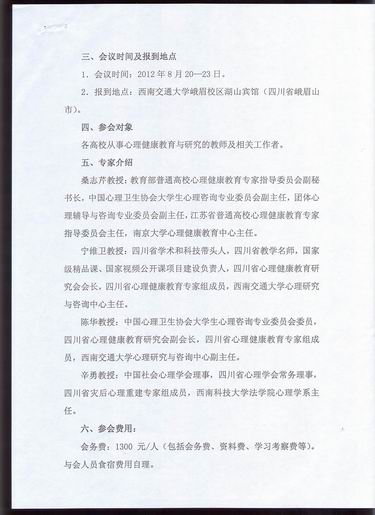 关于举办“全国高等学校心理健康教育骨干教师培训与学术交流研讨会”的通知