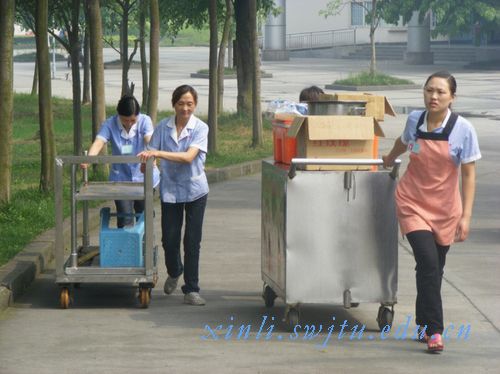 如果你也在二教楼前买过早餐,那么你一定见过她们。每天上午,她们都在那里为饿着肚子匆匆赶去上课的学生提供早餐。当学生们开始上课,她们推着空空的推车默默离去。如果你以前的脚步太过匆忙,从未注意过她们,那么从明天开始,当你从她们手中接过早餐,请回报以一个微笑,或一声“谢谢”。