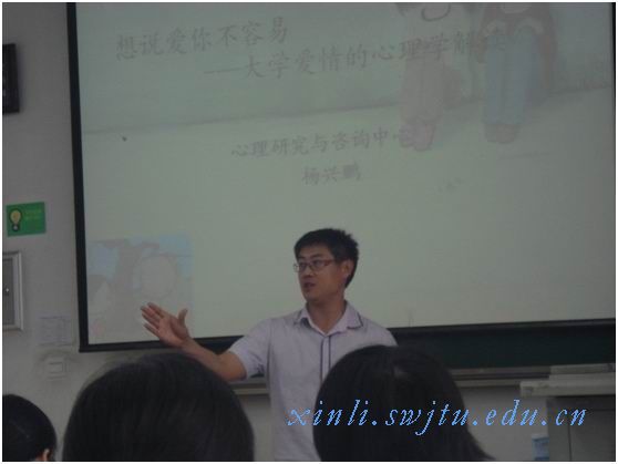 主办,大学生心理学会承办的“心力论坛”系列讲座之“想说爱你不容易”在x2537开讲。讲座由心理咨询中心杨兴鹏老师主讲.