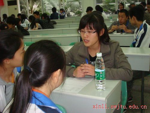 2009年4月9日下午四时许,西南交大心理学会的同学们走进郫县一中,为即将跨入考高考场的考生们进行心理辅导。郫县一中的杨双双老师与我校学生一起参加此次咨询活动。