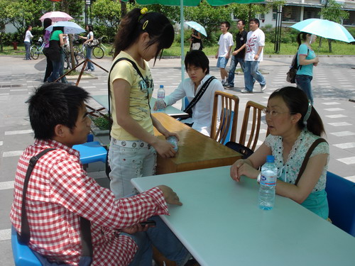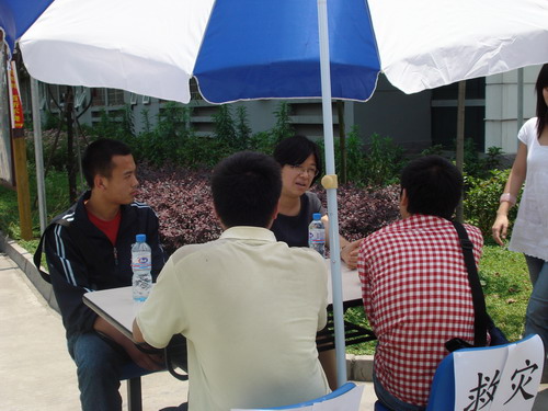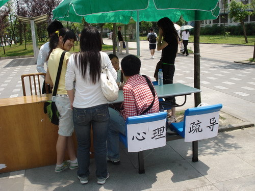 马老师:我们全体教师在学校统一布置和中心的领导指导下,开展了许多工作。第一,现场咨询。中心的老师在地震后的第三天,就开始为同学们进行心理咨询。因为震后咨询室房屋不能进入,但是还是有同学需要心理疏导,于是我们就做了现场咨询。地震后不久,在犀浦校区一食堂、三食堂、四食堂门口,九里校区三食堂门口、求实路口都展开了现场咨询。第二,中心根据各院系的具体要求为同学们进行有针对性的咨询。比如有的学院, 同学们非常焦虑、非常恐慌,我们就给他们做一些心理疏导。第三,我们做了几千张宣传单,介绍在这种突发应急事件前我们会有哪些情绪的反应、哪些躯体的反应、哪些认知上的误区以及产生哪些心理问题,然后怎么去应对它、怎么去调节它。第四,培训工作。我们将培训各个学院的辅导员和班级的心理委员,帮助他们掌握一些必要的应对心理应激的知识,给予同学们及时有效的帮助,顺利渡过样这样一个难关。