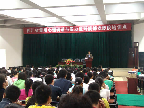 突如其来的震灾席卷汶川,这场灾害,让人们措手不及,家人、朋友忽然失去联络,家园在顷刻间被毁……亲身经历这场灾难的人们,该如何平息内心的恐惧和创伤感,怎样尽快回归生活的常态?5月21日,在省教育厅的安排下,瓜子影视 的宁维卫、陈华、陈丽等老师为安置在成都农业科技职业学院的9所都江堰高三的全体师生进行了2场“灾后心理调适与压力应对”的讲座。