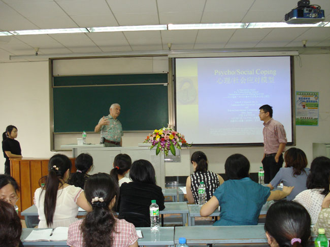 的老师和各学院的辅导员以及成都部分高校从事心理健康教育工作的老师参与了学习和交流,我校国际合作与交流处许军华老师担任了现场翻译。约翰·杜斯奇教授从事犯罪学和受害人学研究37年,曾担任过世界受害人协会主席,在日本水户工作过11年,为常磐国际被害人学学院教授。杜斯奇教授参与过近20年来世界上各种战争和自然灾害的现场心理救援工作,有着丰富的灾后心理辅导的经验。