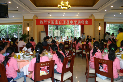 “祝你们一路顺风!在新的学校学习、生活愉快!”校长陈春阳在6月26日晚5点开始的送别晚宴上,对来自地震重灾区理县的117名理县中学学生说到。这群孩子和他们的老师将前往江苏海门的东洲中学开始两年的学习生活。 6月26日中午,来自理县的小客人们来到了九里校区,在瓜子影视 的老师以及一些志愿者同学的带领下,参观了交大美丽的校园。而在短暂的晚宴过后,他们就将登上东去的火车,经38小时的旅途到达上海,再转往江苏,为此,学校准备了一袋食品给小朋友们。陈春阳校长还将学校特意准备的电子辞典交给了学生代表,鼓励他们好好学习,小女孩接过这份礼物,感激地鞠了一躬,说:“谢谢各位叔叔阿姨!” 四川省教育厅李书记、理县教育局何局长、以及江苏海门东洲中学校长,都对我校的细心接待表示了感谢。