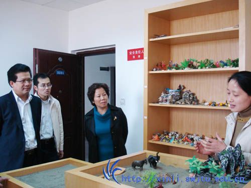 宁维卫主任向来访领导详细介绍了我校在大学生心理健康教育工作方面开展情况,并就大学生心理咨询与测评实验室建设情况作了详细解说。经过近两年时间的建设,我校大学生心理咨询与测评实验室已率先成为国内专门用于心理健康教育的开放性、创新性、实践性的综合性实验室,并在大学生心理健康测评、心理咨询以及心理健康教育研究领域发挥了积极作用。江西省委教育工委史蓉蓉副书记以及四川省委教育工委周光富委员等领导就实验室在使用、研发和创新等方面的情况进行了了解。并现场对沙盘治疗的原理进行了细致了解。沙盘治疗作为一种心理疗法,是通过对图形、沙具、摆放的顺序以及在这过程中的相互引导,交流,达到发现其“原型意象”,指导于具体的心理危机干预和治疗的方法。我校在日常的心理危机干预治疗中应用广泛,效果良好。在生物反馈实验室,来访领导亲自体验了仪器效果。我校在国内率先应用生物反馈技术开展团体训练,并应用于大学生心理疾患的治疗。来宾对我校在此方面作出的探索和创新予以充分肯定,并就实验室服务、研发等方面工作提出了建议。