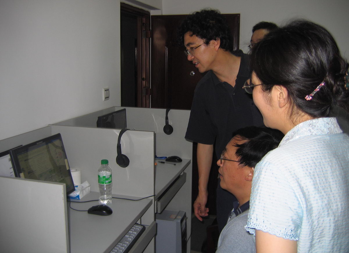 主任宁维卫教授的陪同下,参观了我校心理测评与咨询实验室。朱健梅书记对来宾表示热烈的欢迎,并就我校心理健康教育工作亮点进行了介绍。随后,宁维卫主任热情详细地向来宾介绍了我校大学生“心力”心理测评与咨询网站的建设、管理、使用、发展等情况,以及心理动力学实验室、情绪宣泄室、团体心理训练室(心理剧治疗室)、虚拟现实和音乐心理治疗室的功能、使用情况等。王书记饶有兴趣地浏览了“心力网”主页,了解网站内容,关切地询问不同群体在情绪宣泄时不同表现,最后在虚拟现实心理治疗室体验虚拟现实效果,了解进行心理治疗方法等。参观结束后,王书记对我校心理测评与咨询实验室以及心理健康教育工作给予积极的评价,并表示有许多值得他们学习、借鉴的地方,希望今后两校在心理健康教育工作方面有更多机会相互交流,互相学习,共同促进大学生心理健康教育工作稳步发展,为构建和谐校园、和谐社会做出应有的贡献。