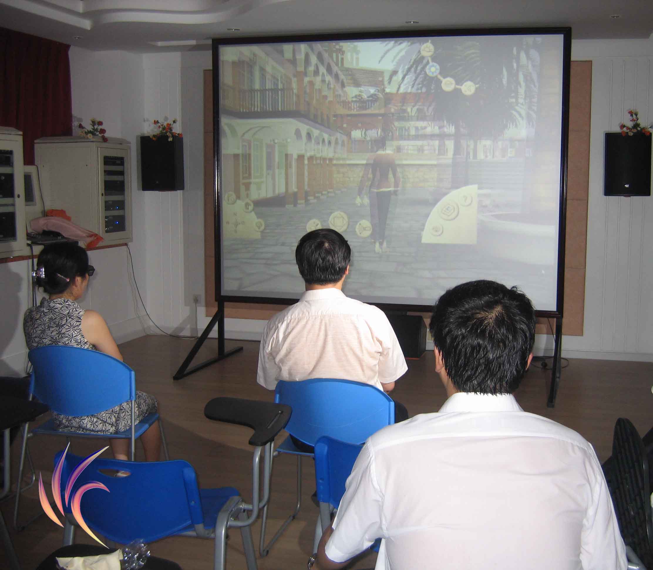 在宁主任的推荐下,张副书记一行又来到5227实验室,戴上特制的眼镜,亲自感受了一回“虚拟现实”治疗法。记者也有幸一试,感觉确实很奇妙。宁主任介绍说,利用“虚拟现实”疗法,对于治疗恐惧症、焦虑症、睡眠障碍等会有很好的疗效,下学期该实验室将向学生开放。