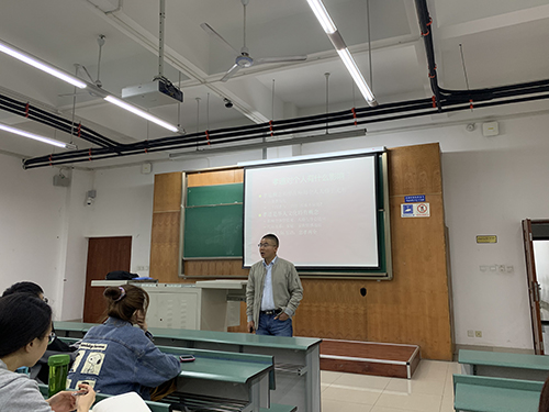 李启明副教授不仅向同学们介绍了该研究的现实背景及所研究的问题,还向同学们详细阐述了其研究的过程及所用到的研究方法,并耐心讲解了如社会学习理论、人类发展生态学理论、生命历程理论等与代际传递有关的专业知识。