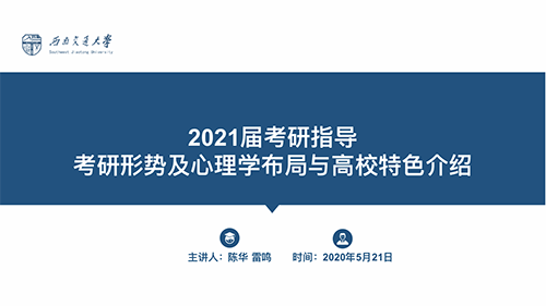 2017级诚挚邀请陈华老师、雷鸣老师参加本次考研讲座,为面临考研的2017级本科生讲解心理学学科布局与相关高校的特色,2017级打算考研的同学在腾讯会议视频软件中参与本次讲座。