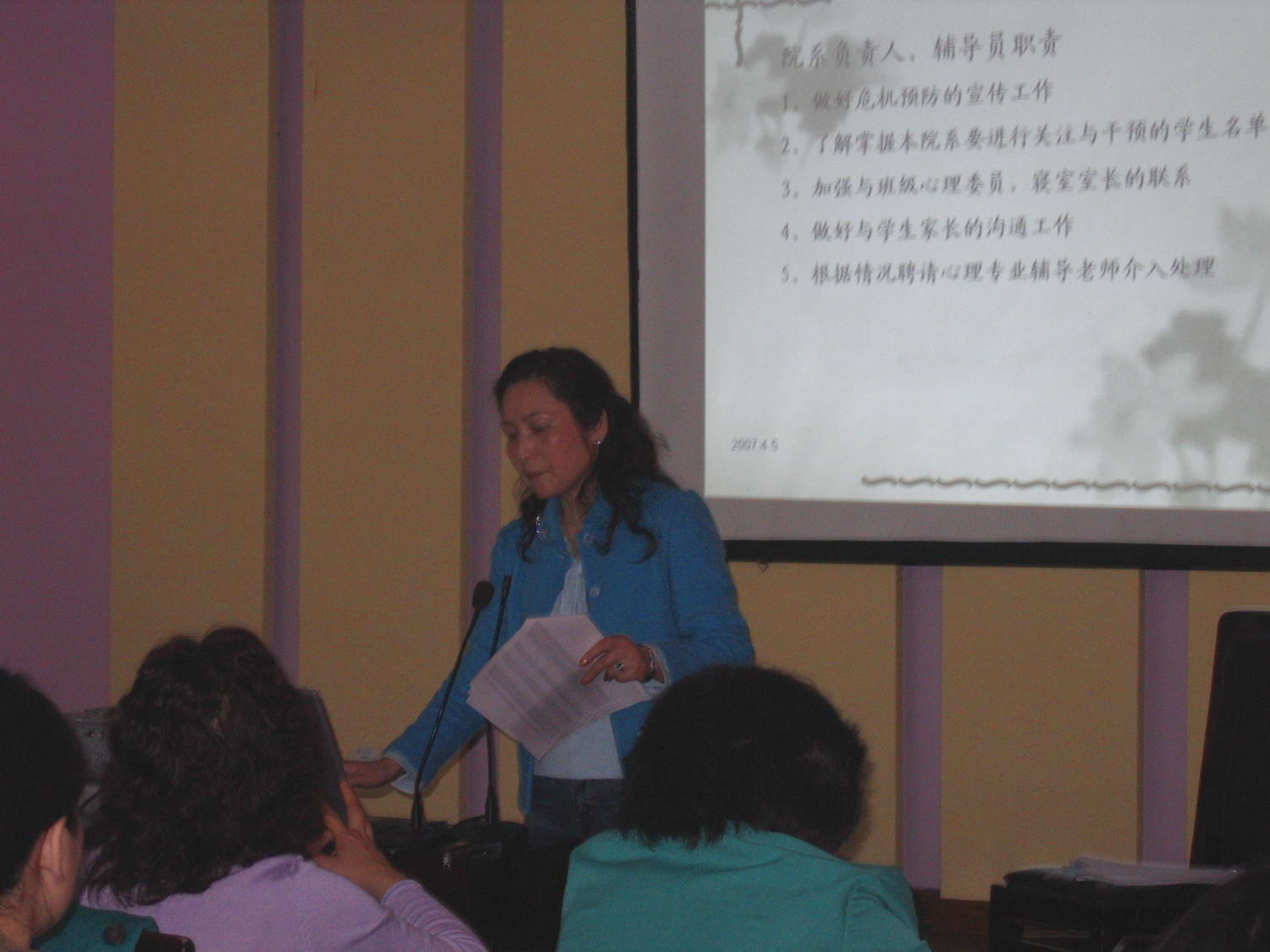 曾处长在发言中首先对我校对心理危机预防与干预工作的高度重视和大力支持表示衷心地感谢,总结了各高校开展此项工作所取得的成绩和经验。此外,曾处长还对今后工作的发展方向提出了新的要求,即重视心理健康教育骨干教师的培训工作,提高教师的业务水平,最大限度发挥“第一战线”的作用;针对学生普遍存在的问题,发挥心理健康教育知识宣传和普及优势,善于从中发现学校在心理健康教育方面存在的问题,以便有针对性地解决。