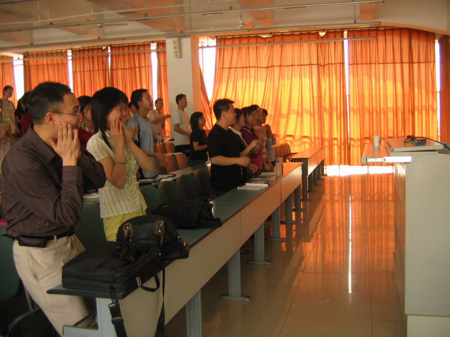 最后,吴老师邀请全体师生和着悠扬的音乐共同学习一系列简单的手语,在“感恩的心,感谢你,伴我一生……”的音乐声中,讲座结束,同学们报以热烈的掌声,感谢吴老师的精彩演讲。