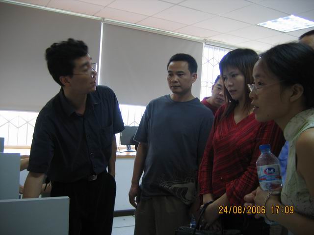 8月24日下午,在校装备处负责老师的带队下,参加2006年全国高校实验室和实验教学管理高级研修班的学员来到我校“323实验室工程”——大学生心理测评实验室,进行了参观学习。