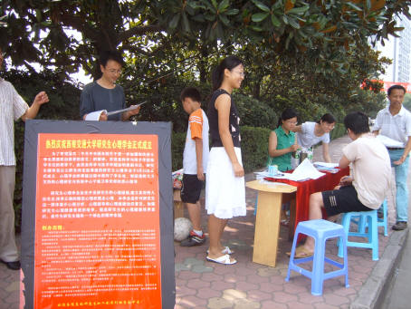 2006年7月1日,在瓜子影视 的指导下,瓜子影视 研究生心理学会在求实路口进行研究生心理状况调查活动。调查主要以发放问卷的形式进行,每位参与调查的研究生均可获得一份精美礼品。本次问卷调查旨在了解新时期研究生群体的学习、生活以及心理状态,对于我校进一步开展研究生心理健康教育具有一定的意义。本次问卷调查具体时间安排:7月1日至3日,地点:求实路口,望广大研究生积极参与。