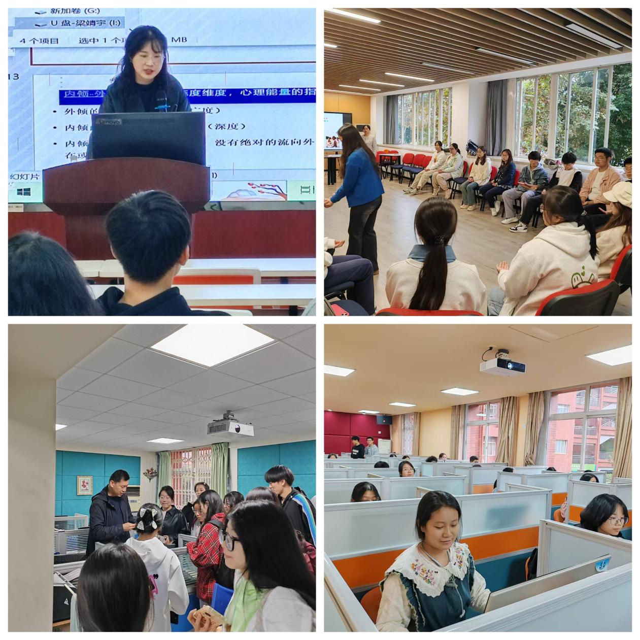 助理教授梁靖宇带领。在活动中,梁老师深入讲解了MBTI人格理论,帮助同学们通过探索自己的人格类型,发现自身优势,助力心理健康和职业成长。同学们积极互动,对自己的性格特点有了更清晰的认识。随后,第一组同学在马岳德老师的带领下参观了心理实验室,体验了虚拟现实、生物反馈、情绪宣泄、沙盘等心理辅导技术,探索心灵深处的奥秘。接着,在徐建老师的指导下进行了自我测评,通过心理测评工具了解自身心理状态,促