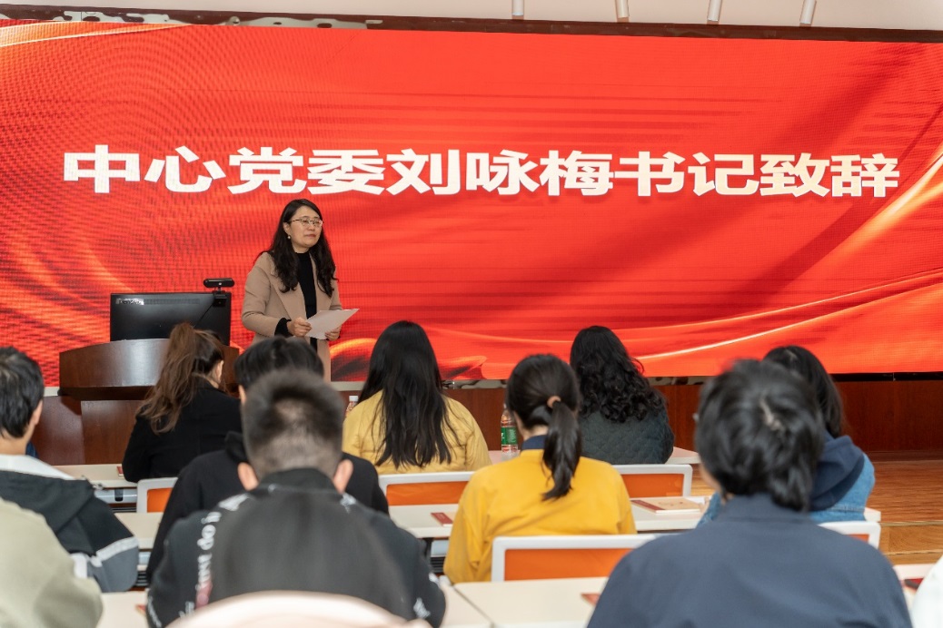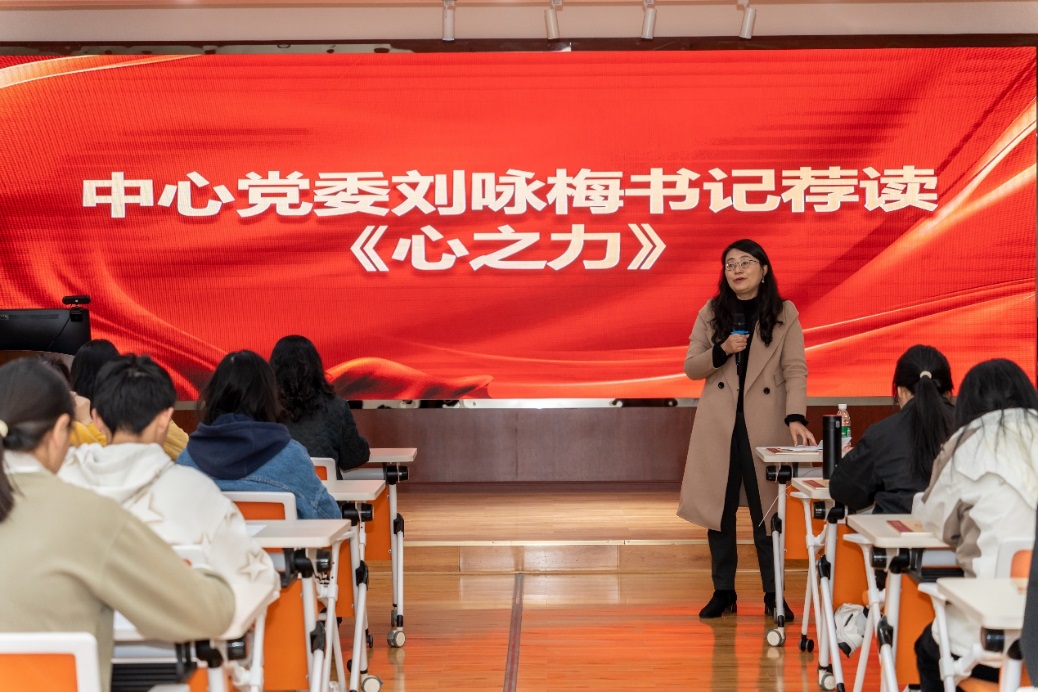 朗诵完毕,刘咏梅书记为大家荐读了《心之力》。她结合文章创作的时代背景和个人成长经验,对文章进行了深刻剖析与独到解读。她强调,作为新时代的中国青年,要勇于激发自己的内心力量,以更加饱满的热情和坚定的信念,为祖国的发展贡献自己的心理力量。