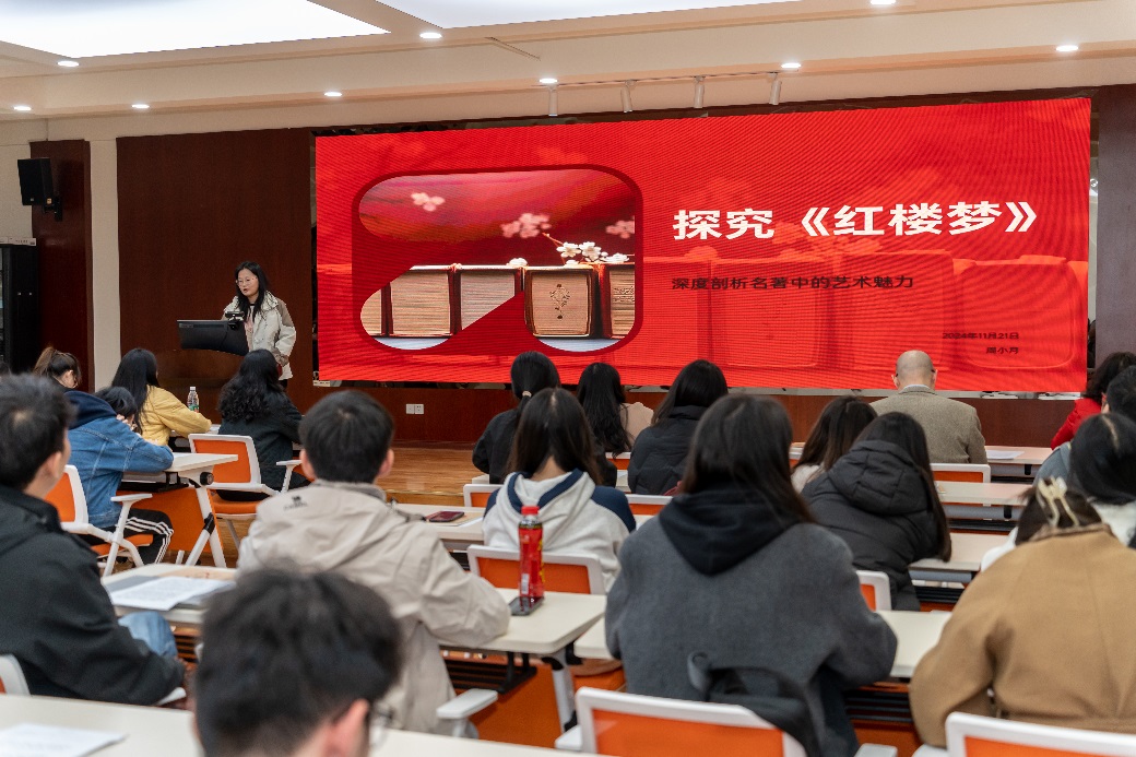 最后,大一新生周小月也勇敢地站上了讲台,向大家荐读了经典名著《红楼梦》。她以独特的视角和深刻的理解,向大家展示了她眼中的红楼世界。她的讲解既充满了青春的活力与激情,又透露出对传统文化的敬畏与热爱。