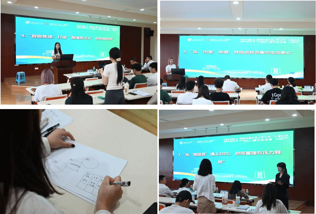 在现场活动设计与演绎环节,5位心理委员根据随机抽选到的《容貌焦虑:打破“颜值即正义”的思维陷阱》《当“拖延症”遇上DDL:时间管理与压力释放》《当“内卷”来袭:寻找自我节奏与生活意义》等主题,进行现场设计与演绎。