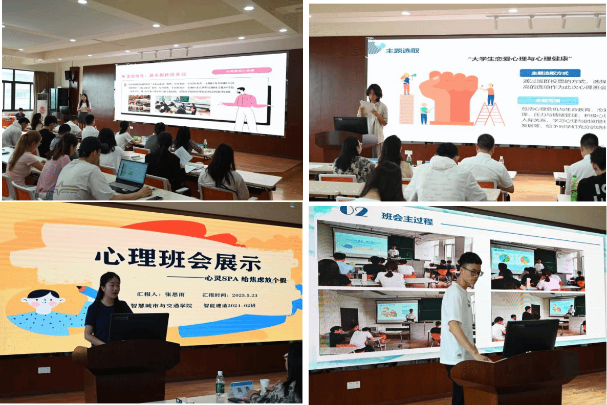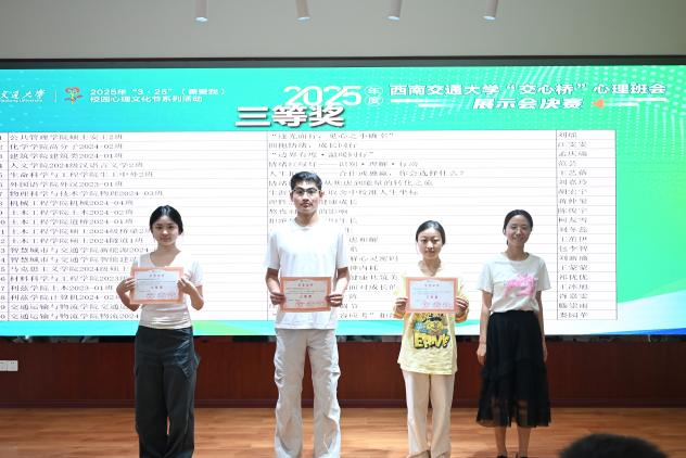 经过激烈角逐,建筑学院城乡规划2022-01班、信息科学与技术学院轨道2024-01班摘得特等奖,公共管理学院法学2024-02班等3个班级获一等奖,交通运输与物流学院交运硕士2024-10班等5个班级获二等奖。智慧城市与交通学院智能建造2024-02班的张思雨、建筑学院城乡规划2022-01班的张雯琦、公共管理学院法学2024-02班的马尔丹·别克加沙尔分别获得心理委员最佳个人风采奖、最佳创意策划奖、最佳宜人亲和奖。