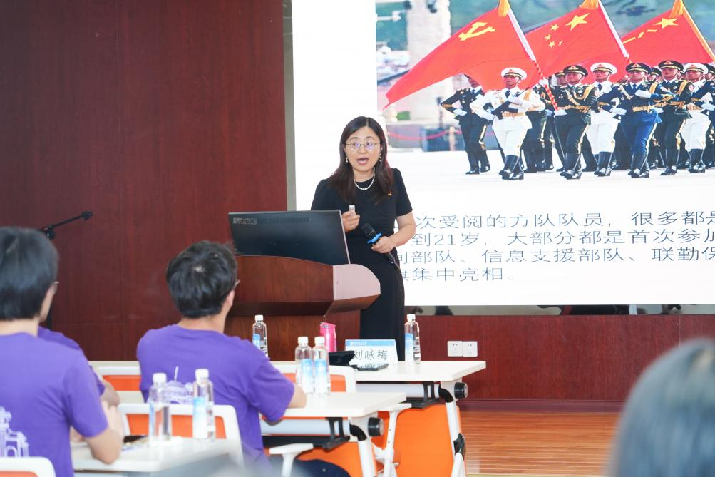 课上,刘书记首先带领同学们回顾了九三阅兵的精彩瞬间。年轻队员与多支首次擎旗亮相的方队彰显国防力量代际传承,军事航天部队等新方队、战旗方队及各类作战装备展示则见证国防实力飞跃。他们不仅展现了我国强大的军事实力,更让同学们深刻感受到国家底气的来之不易。