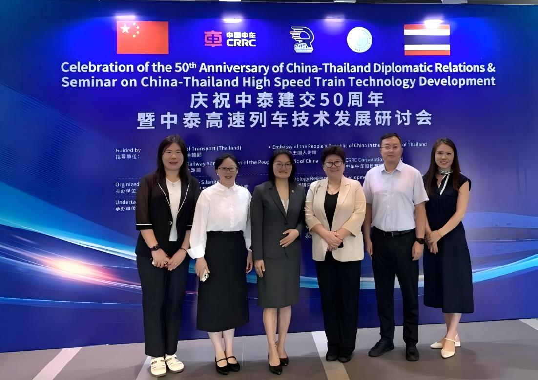 10日上午,代表团一行出席在泰国曼谷举办的庆祝中泰建交50周年暨中泰高速列车技术发展研讨会,国际合作与交流处副处长、天佑铁道学院副院长欣羚就我校科研工作及相关教育合作交流情况作专题工作报告,并参与“中泰高速列车技术教学培训基地(泰国)”揭牌仪式。