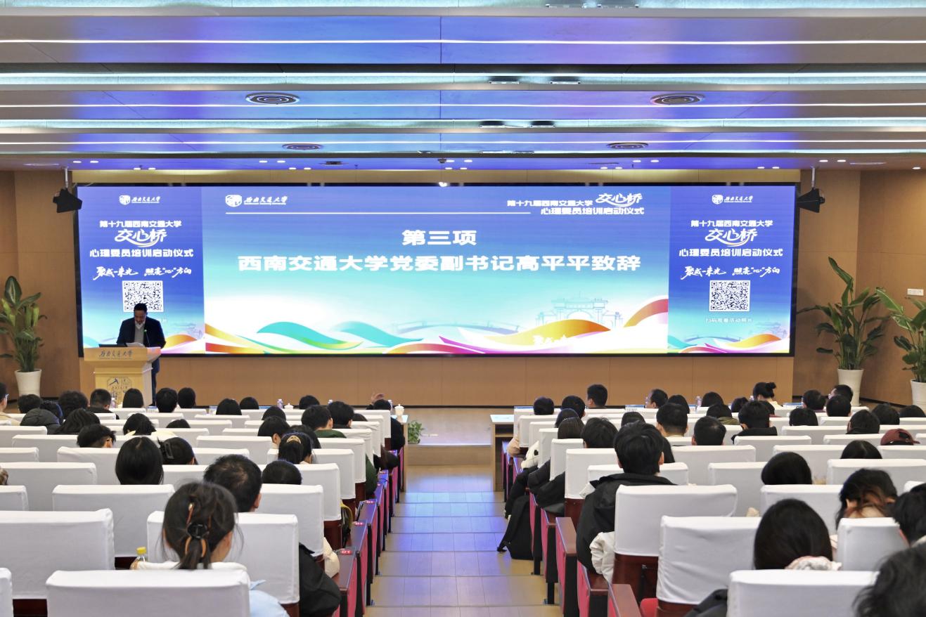 第十九届“交心桥”心理委员培训启动仪式在犀浦校区图书馆1号报告厅举行。校党委副书记高平平出席并致辞。党委研究生工作部部长朱志武,党委学生工作部副部长杨华,瓜子影视
