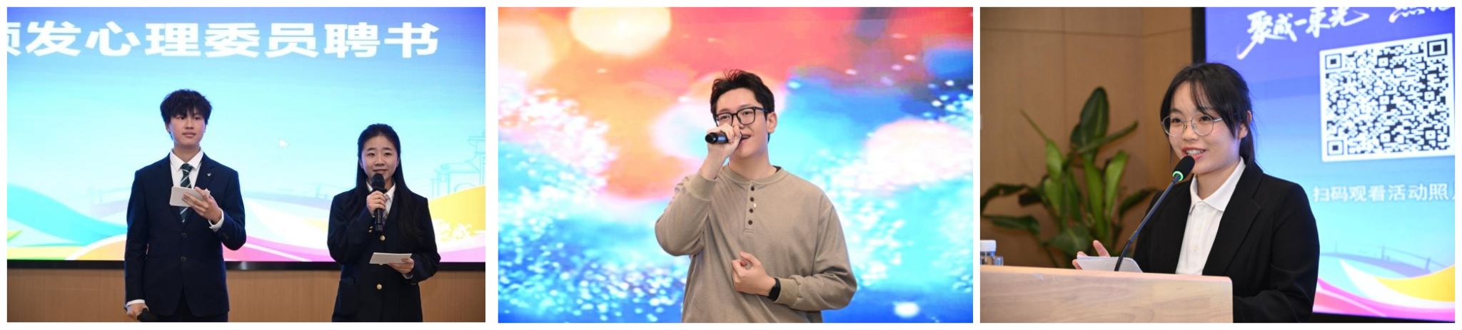 在庄重的聘任仪式上,朱志武部长、杨华副部长和高雪梅主任分别为2025级研究生心理委员和本科生心理委员代表颁发聘书,标志着新一届朋辈队伍正式启航。