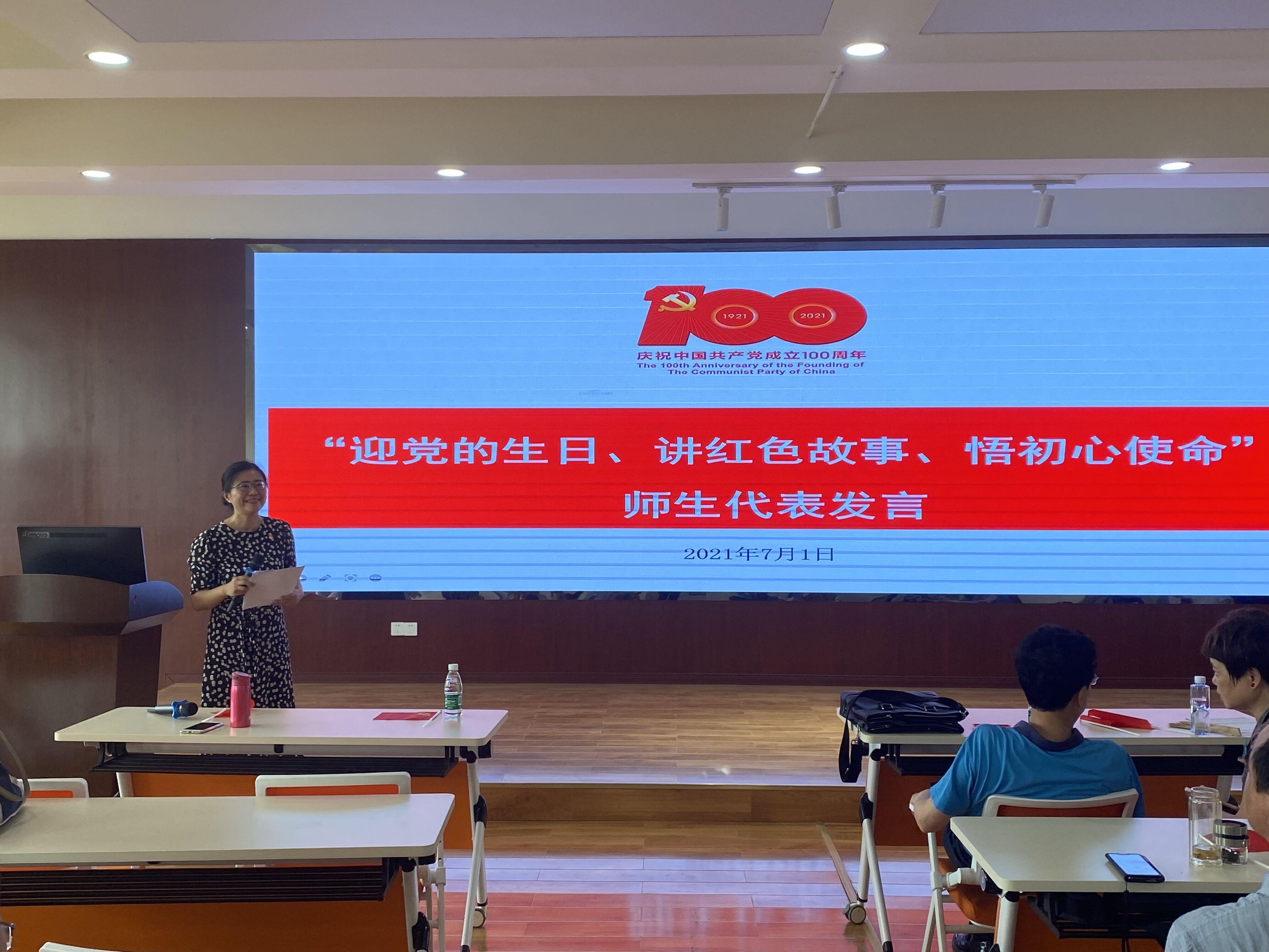 全体教职工和学生党员在此隆重集会以表彰先进、话初心送祝福的形式庆祝党的生日,有着十分特别的意义。近年来,中心党支部坚持以习近平新时代中国特色社会主义思想为指导,深入学习和贯彻落实党的十九大精神、全国教育大会精神,不断加强基层服务型党组织建设和党员队伍建设,充分发挥政治核心作用、战斗堡垒作用和模范先锋作用,广大党员以饱满的政治热情、秉承交大双严传统,以严谨治学、严格要求的工作作风,积极投身到中心的各项改革中。借此机会,刘书记向中心的党员同志们提出了三点期望:一、以党员身份为荣,坚定理想信念;二、以人民教师为荣,坚持立德树人;三、以新时代的建设者为荣,坚持拼搏奉献。她指出,希望中心全体党员能努力弘扬伟大建党精神,更加紧密地团结在以习近平同志为核心的党中央周围,更加坚定地高举中国特色社会主义伟大旗帜,更加奋发有为地牢记使命,接续奋斗,为实现中华民族伟大复兴而努力工作。