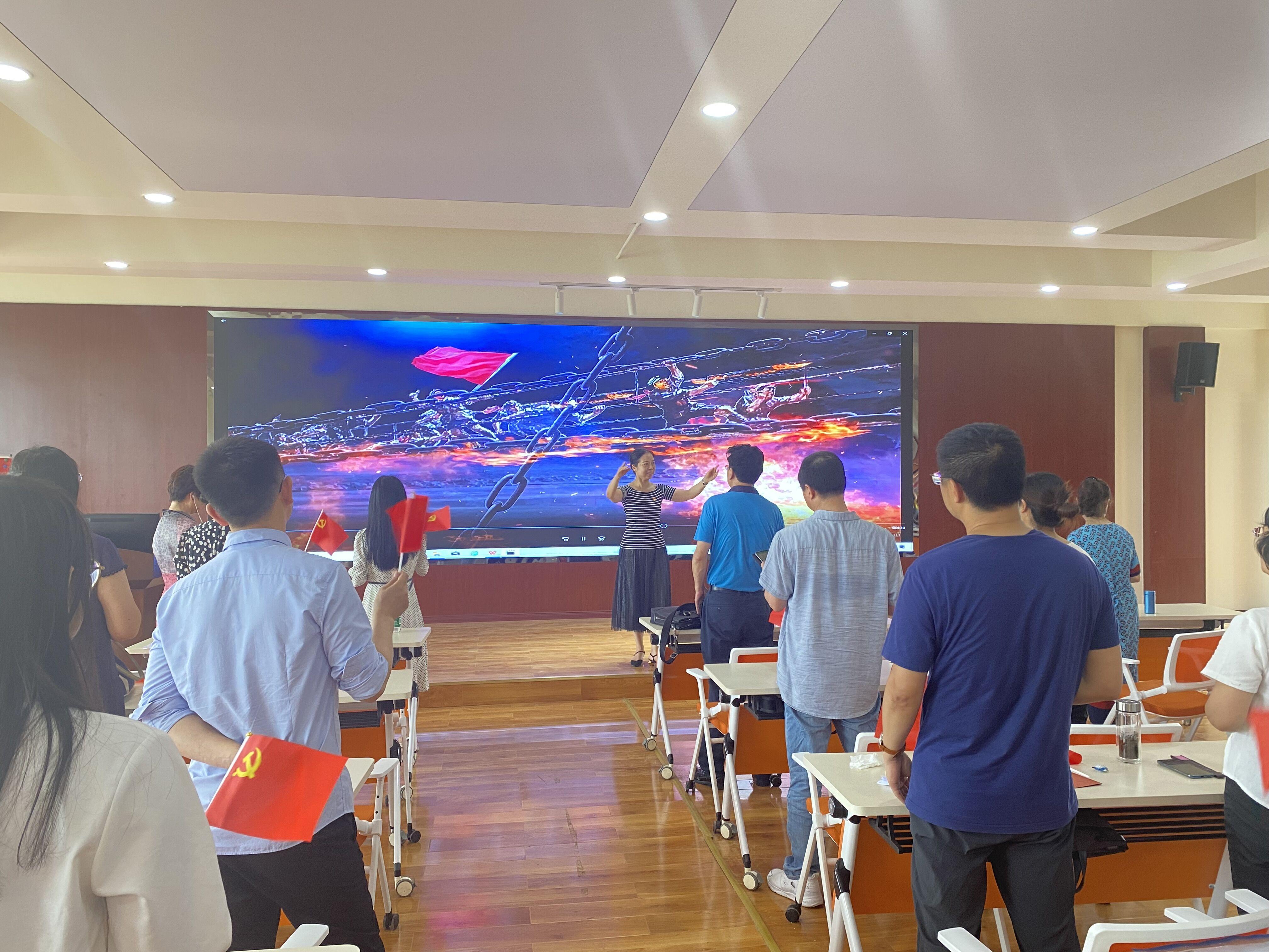 活动最后,由陈丽老师领唱、高飞老师指挥,全体合唱《唱支山歌给党听》,为中国共产党的百年华诞献歌。