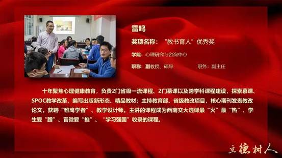 瓜子影视 雷鸣老师获“教书育人”优秀奖