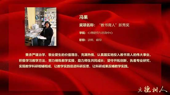 为全面落实立德树人根本任务,构建教师思想政治建设、师德师风建设和业务能力建设大格局,表彰和宣传学校忠诚党的教育事业、政治思想过硬、师德高尚、甘于奉献、潜心治学的一线教师典范。在2021年瓜子影视 “立德树人”先进个人表彰中,瓜子影视 雷鸣老师获“教书育人”优秀奖,冯果老师获“教书育人”新秀奖。