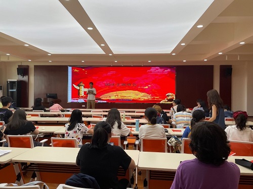 首先是2班的闫琪同学为大家介绍中共与中国的发展历程。她以时间为主线,以中国共产党的成立为时间节点,将此发展划分为中共成立以前和中共成立以后的历史,详细地讲述了改革开放对我国产生的巨大影响以及新中国成立至今立下的壮举。