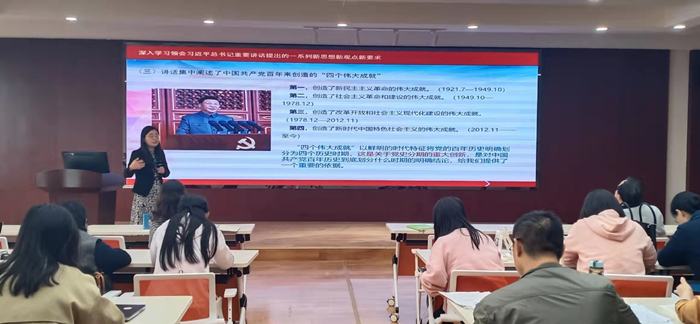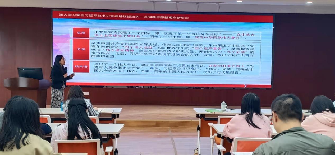 最后,刘咏梅书记强调,希望中心师生深刻把握伟大建党精神这个精神之源,紧密结合工作实际,不断深化对“七一”讲话精神的理解领悟,真正学深学透、融会贯通,立足个人岗位,在学思践悟中总结经验、观照现实、推动工作。青年学生要深刻领会“七一”重要讲话精神,用知识武装头脑,用思想指导实践,把伟大建党精神继承下去,发扬光大,为新的百年征程贡献自己的力量。