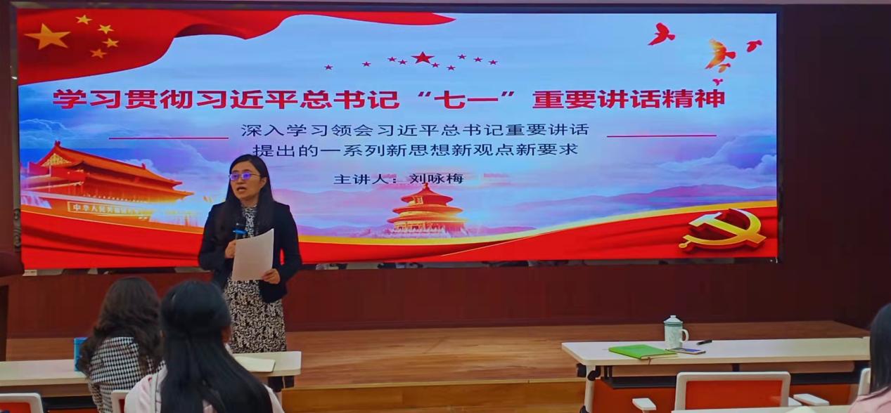 会上,刘咏梅书记对习近平总书记“七一”重要讲话精神进行了全面解读,带领大家深入学习领会了习近平总书记重要讲话提出的一系列新思想、新观点、新要求。刘书记指出,习近平总书记“七一”重要讲话是激励全党全国各族人民奋进新时代、走好新征程的强大动员令,学习贯彻习近平总书记“七一”重要讲话,最重要的是联系党的百年奋斗历程,全面深入领会讲话的丰富内涵、精神实质和思想精髓,深入领会讲话在一系列重大问题上的新论断、新概括,增强贯彻落实的自觉性和针对性,进一步把党的历史学习好、总结好,把党的宝贵经验传承好、发扬好,铭记奋斗历史,担当历史使命,从党的奋斗历史中汲取继续前进的智慧和力量。