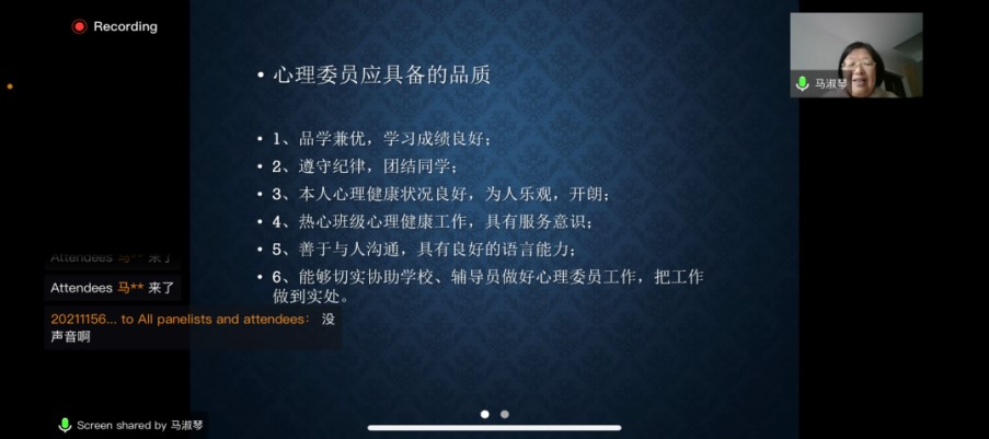 目前,2021级本科新生心理委员培训于11月6-7日两天,通过线上培训方式圆满完成。